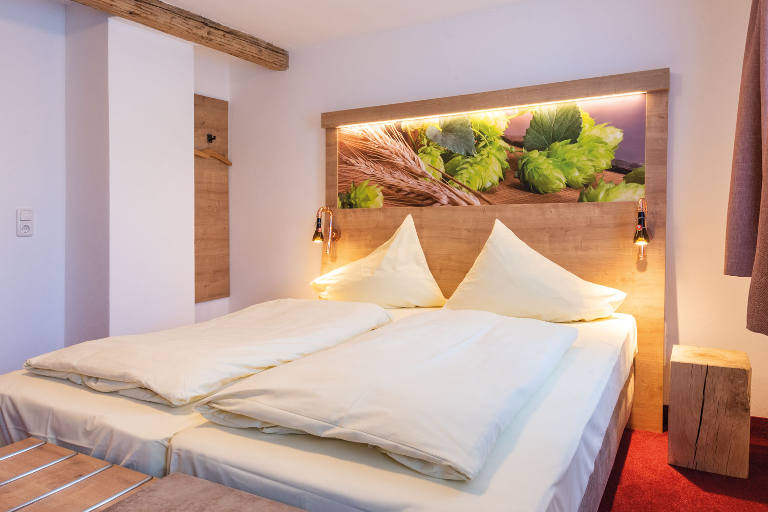 Unser Braugasthof verfügt über 17 Doppelzimmer, in manchen sind Zusatzbetten möglich. Auch zwei Gitterbetten für Kleinkinder sind für Familien da.